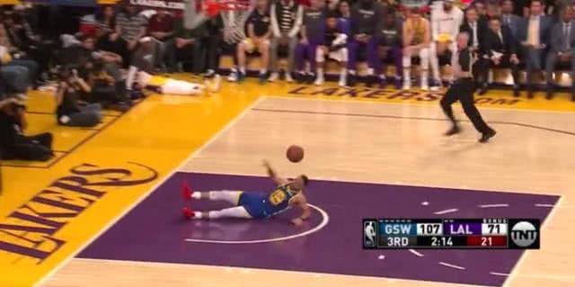 库里滑倒的瞬间,简直让人捧腹大笑。只见他身体失去平衡,向后倒去,双手在空中胡乱挥舞,试图保持平衡。这一切的努力都无济于事,库里最终重重地摔在了地上。